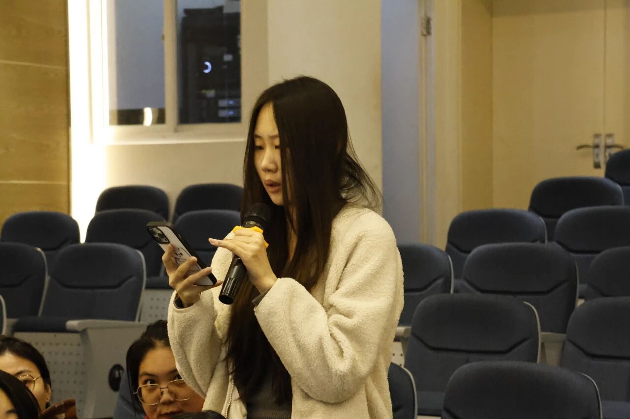 在讲座过程中,周恬老师还发起“一字一诗”的趣味挑战,同学们在纸上写下任意汉字并上交,随后随机抽取纸条,需即兴说出包含该字的古诗,并结合播音发声技巧进行朗诵展示。同学们在诗词吟诵中既锻炼了即兴语言组织能力,又加深了对语言表达的理解。周恬老师结合同学们的表现,将诗词里的字韵与专业表达结合,把互动环节转化为知识传授课堂。