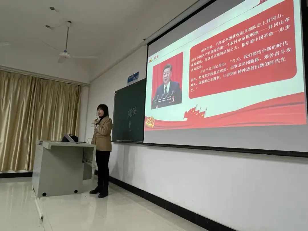 会议伊始,夏露老师为大家介绍了井冈山革命根据地在中国共产党发展过程中的重要地位,并从井冈山的历史地位、革命斗争历程以及井冈山精神的深刻内涵与时代价值等方面展开叙述。