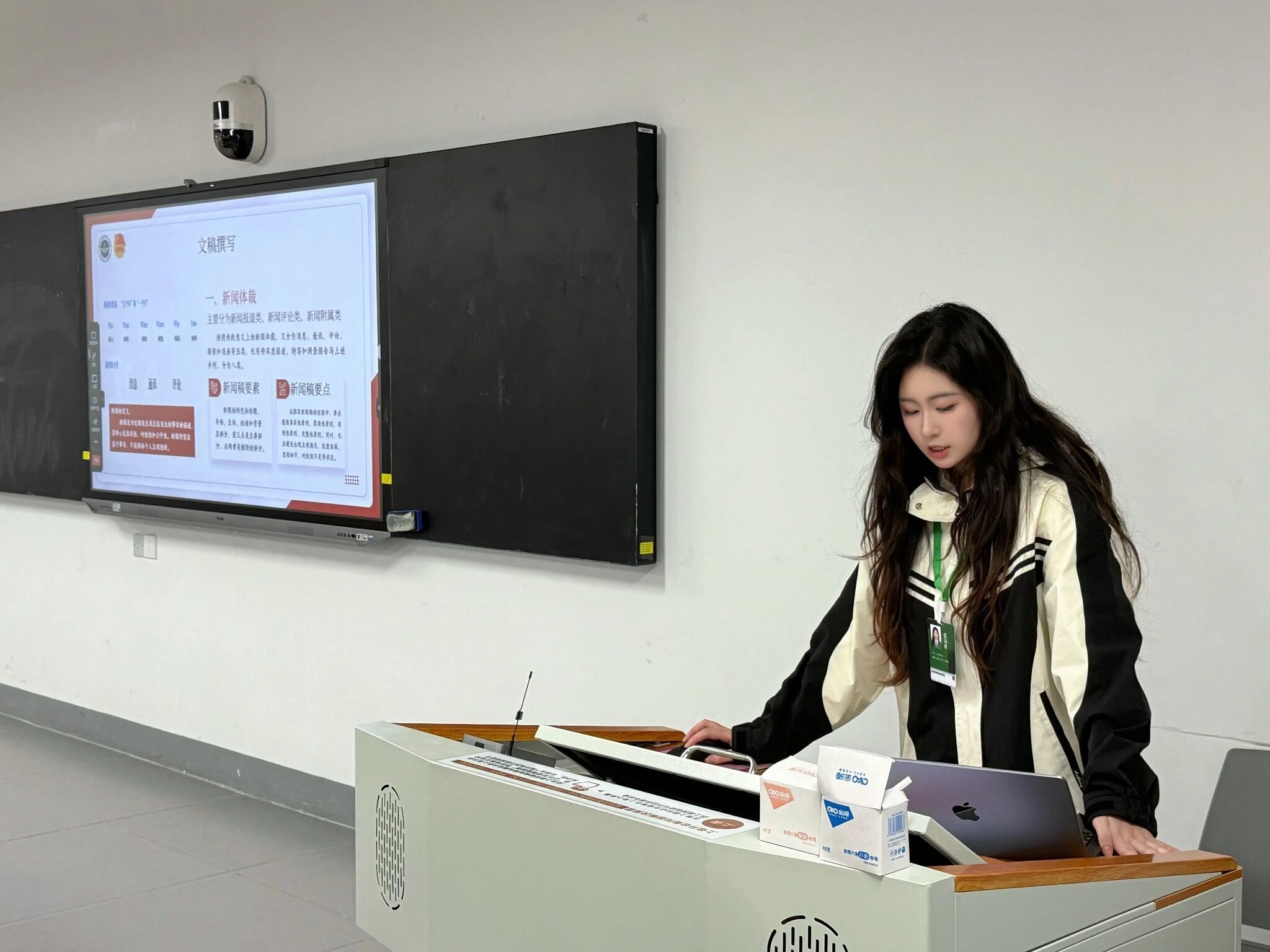 张韵雅则围绕团委宣传部、新闻中心的日常工作及班级常规宣传工作开展培训,她指出文稿撰写、图片拍摄、公众号排版的注意事项,以及目前部门中存在的各种问题。希望各位干事能在以后的工作中更加细心、积极,助力部门进一步发展。