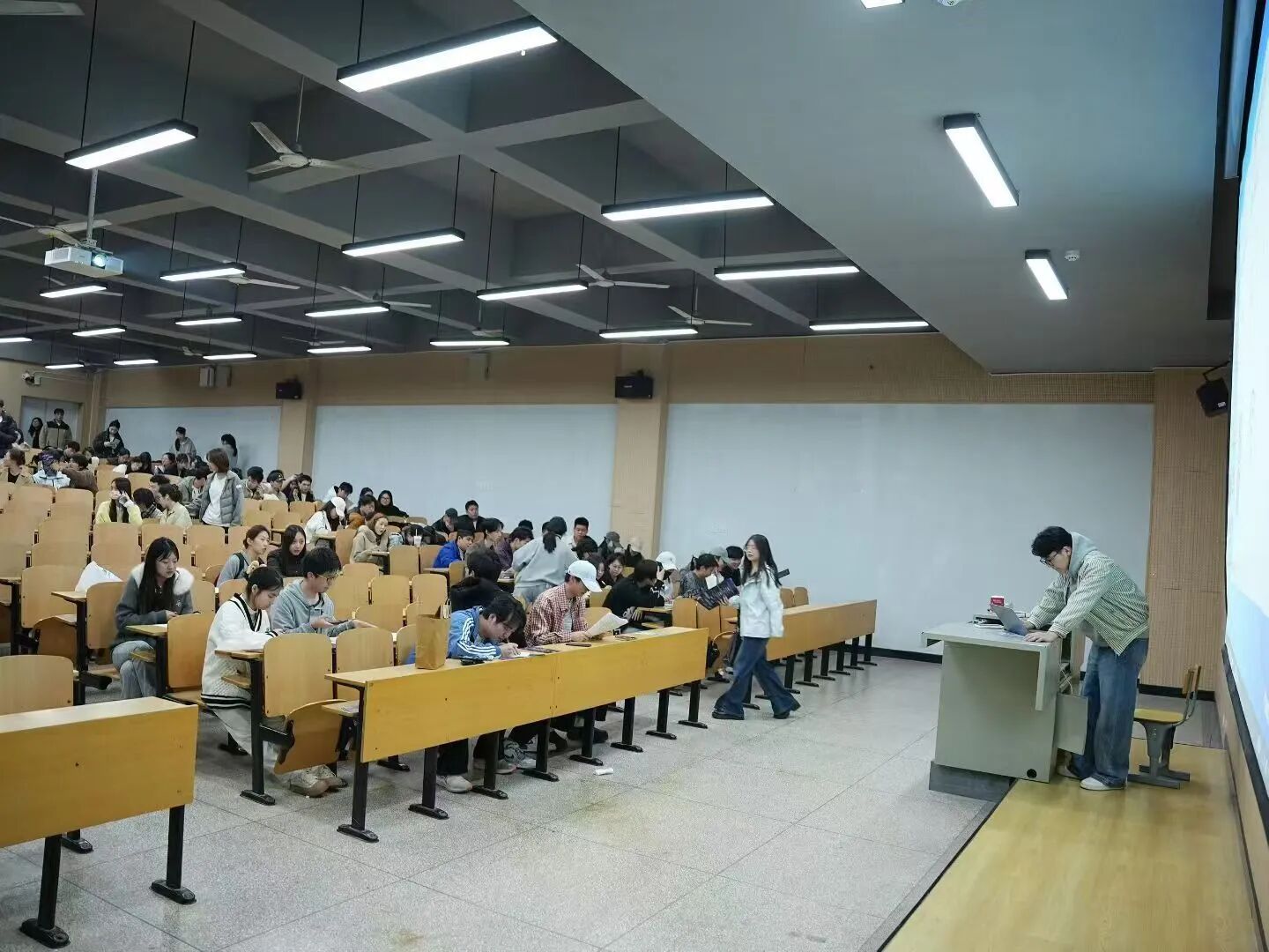互动问答环节现场氛围热烈,同学们围绕岗位工作、招聘要求、岗前培训方案等问题主动提问。招聘负责人逐一细致解答同学们的问题,让同学们对各岗位有了更深入的了解。