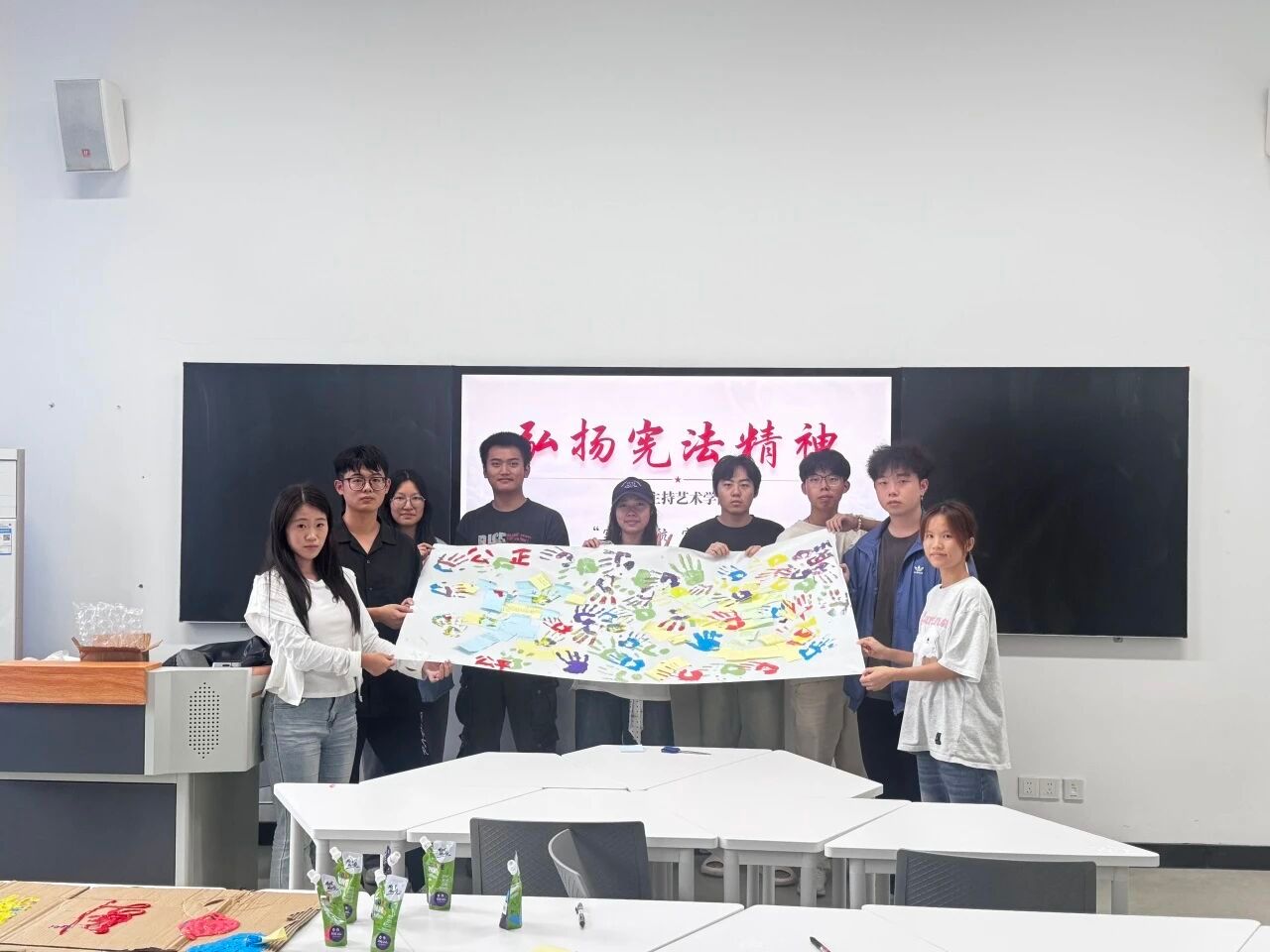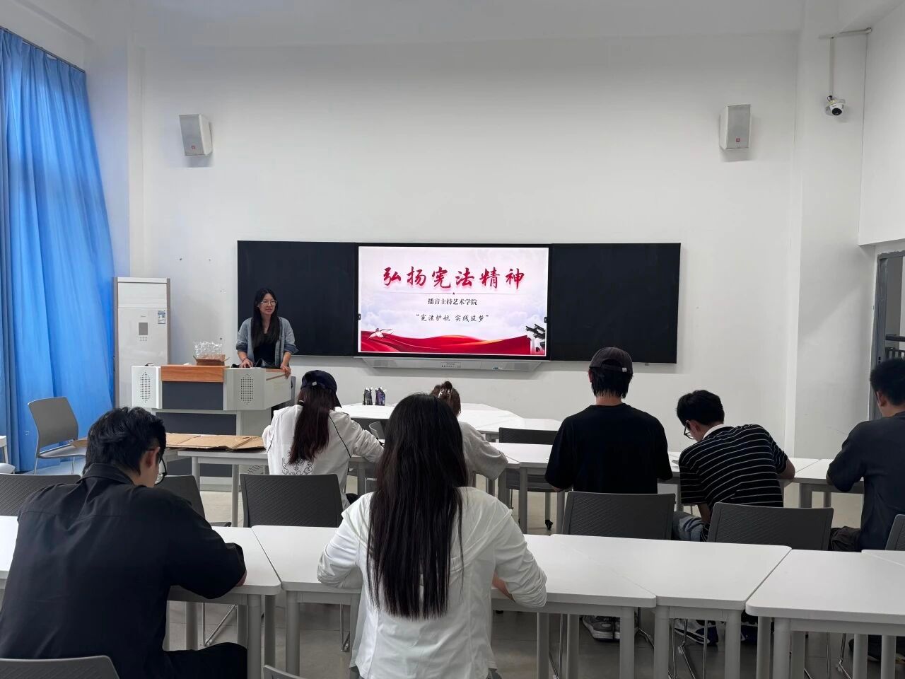 为深入学习贯彻习近平法治思想,增强同学们的法治意识,2025年9月30日,武汉传媒学院播音主持艺术学院于3211教室开展“宪法护航,实践筑梦”活动。