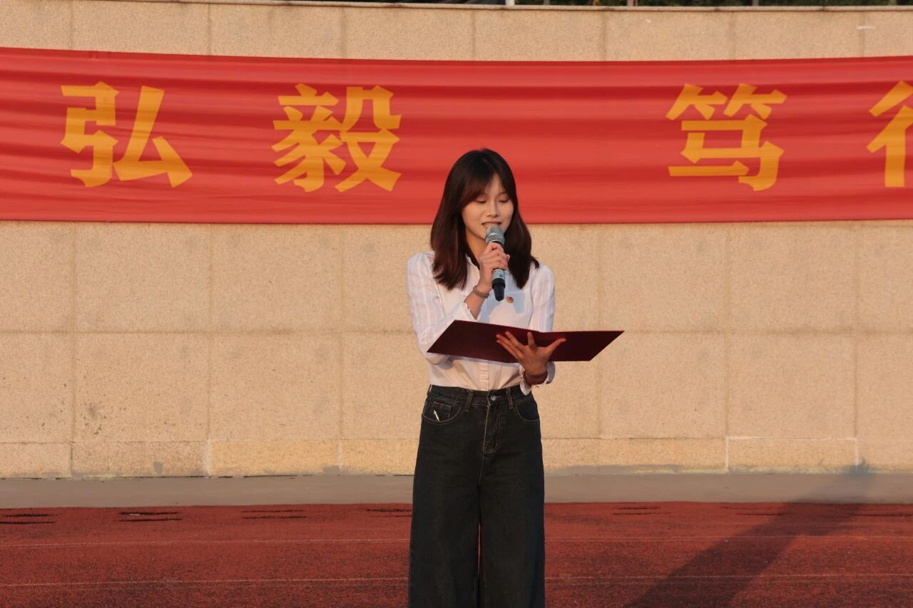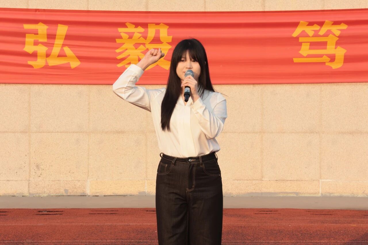 学生代表周梓涵在发言中号召同学们,将个人理想融入国家发展的宏伟蓝图。