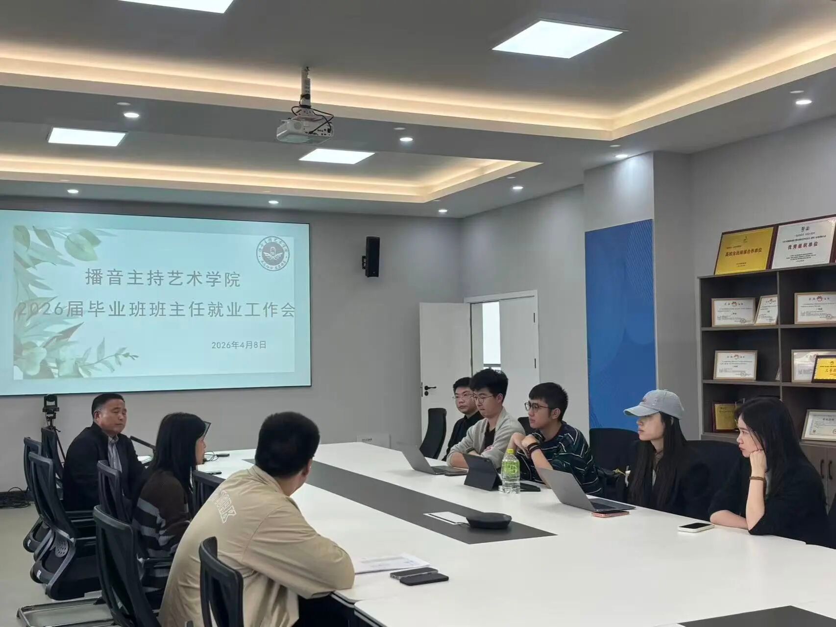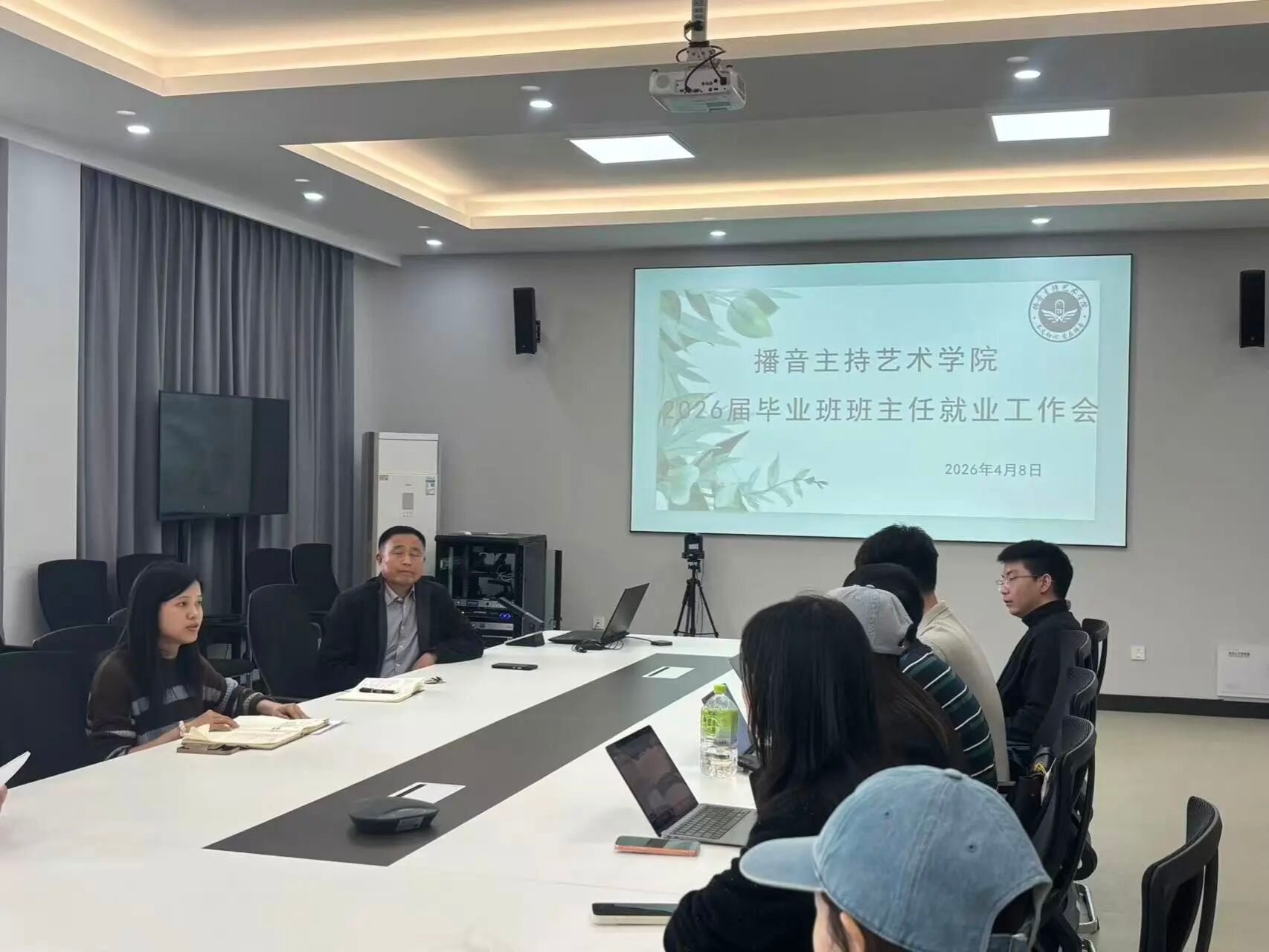 为扎实推进2026届毕业生就业工作,精准对接播音主持专业学子就业需求,2026年4月8日,播音主持艺术学院组织召开2026届毕业班班主任就业工作专题会议。播音主持艺术学院党委书记张爱军同志、学生科科长费燕琴老师、全体毕业班班主任及辅导员参会,会议围绕当前就业形势分析、就业工作任务部署、分层分类精准指导等核心内容展开深入研讨,为下一阶段就业工作明晰方向、细化举措。