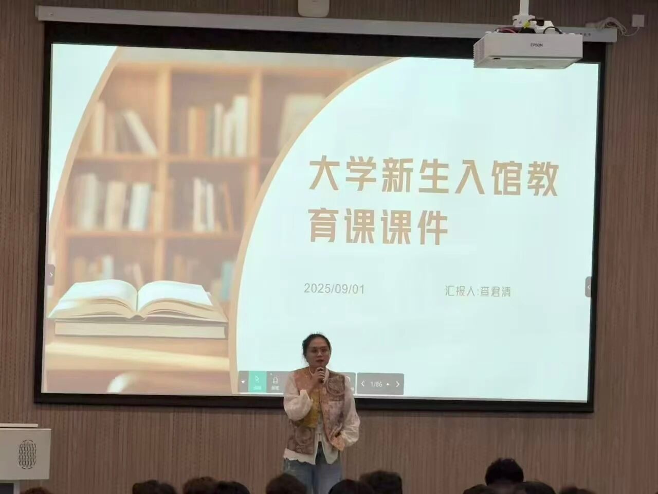 为了提高新生们的学习效率、规范图书馆内学习与借阅行为,2025年10月9日,武汉传媒学院播音主持艺术学院于1209教室开展图书馆入馆教育宣传讲座。本次讲座由大悟校区图书馆工作人员查君清老师担任主讲人。