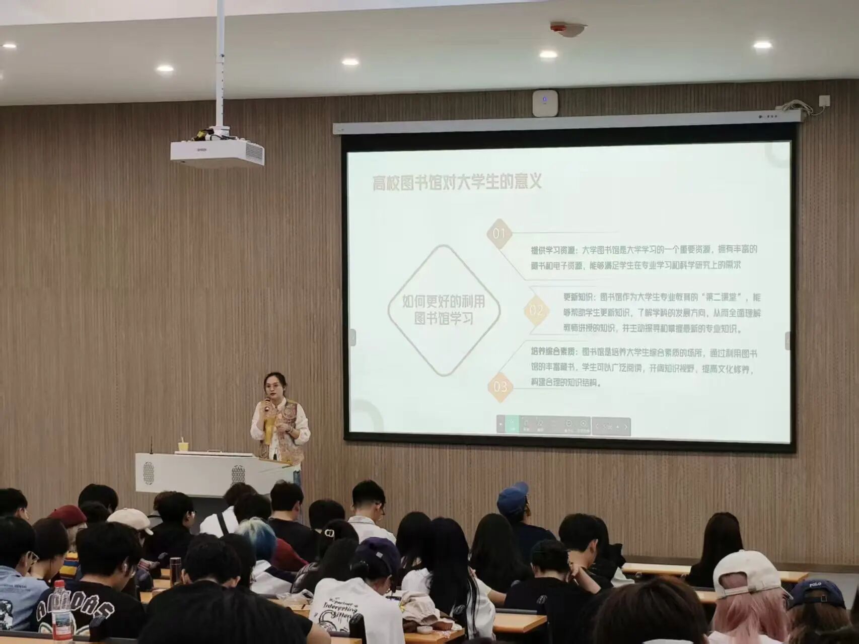 讲座过程中,查老师对大悟校区图书馆的整体建设进行了基本介绍,不仅细致讲解了馆内海量藏书与典籍的分类逻辑,还介绍了荆楚文化等特色专区的文化阅览室。图书馆鲜明的主题分区,为同学们营造了浓厚的阅读氛围,使同学们对图书馆的功能分区及藏书内容有了更清晰的认识。