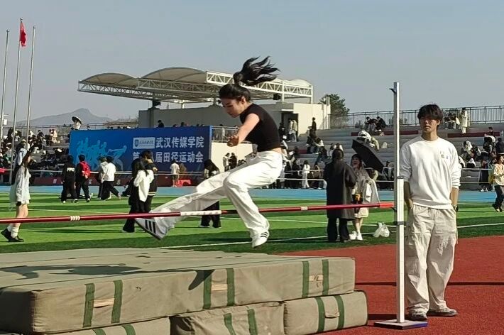 跳远沙坑前,选手们连贯完成助跑、踏跳、腾空、落地,身体划出优美的弧线后,扬起的沙粒见证着他们对更远距离的挑战,场边教练的指导声与观众的欢呼声此起彼伏。这一个个热血澎湃的竞技瞬间不仅为后续赛事的精彩推进营造了热烈氛围,还让师生们更直观地感受到运动的魅力。