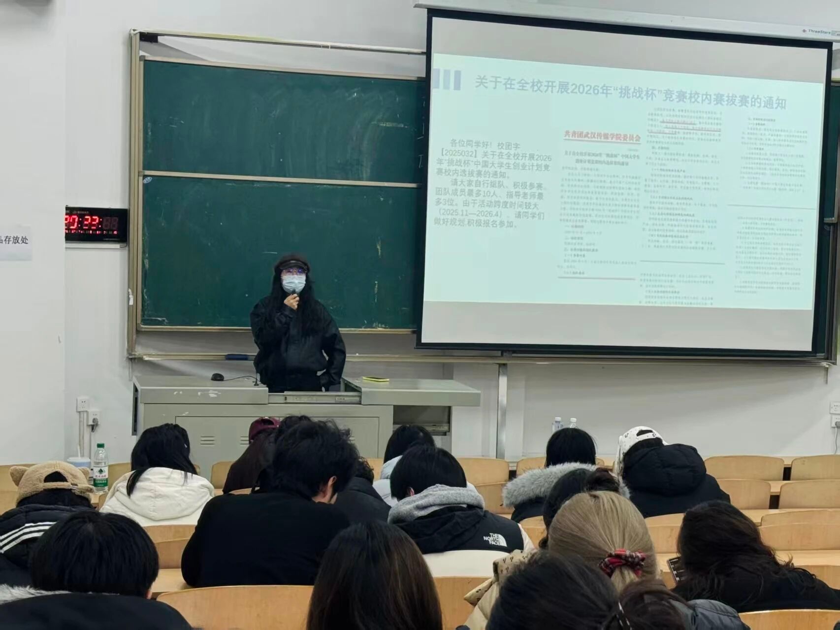 大会中,各辅导员全面介绍了“挑战杯”竞赛的核心信息。各辅导员从赛事定位出发,详细解读了“挑战杯”全国大学生课外学术科技作品竞赛与中国大学生创业计划竞赛两大核心赛事的参赛类别、申报要求及评审标准,重点梳理了契合我院特色的参赛方向,如传媒类学术调研、语言艺术相关创新实践项目、传媒领域创业方案等。此外,辅导员们还详细讲解了学院的参赛组织流程、配套支持政策,包括指导老师配备、专项培训安排、赛事经费补贴等,解答了同学们关于组队方式、作品筹备、时间节点等方面的疑问,鼓励大家打破思维局限、大胆尝试。